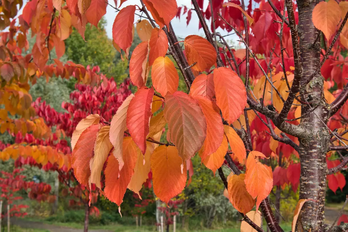 In the fall, its glossy leaves transition to vibrant reds and bronzes, creating a captivating display. With its polished, cinnamon-brown bark, Sargent Cherry not only offers seasonal interest but also provides a sturdy yet graceful structure that is adaptable to urban landscapes, residential lawns, and as a standout specimen tree. While it requires occasional pruning to maintain strong structure, this tree boasts moderate growth and low maintenance needs. Its tolerance to road salt and clay soil further enhances its versatility. Although its fruits are inconspicuous, they are beloved by birds. Embrace the charming presence of Sargent Cherry and indulge in its beauty year-round.
