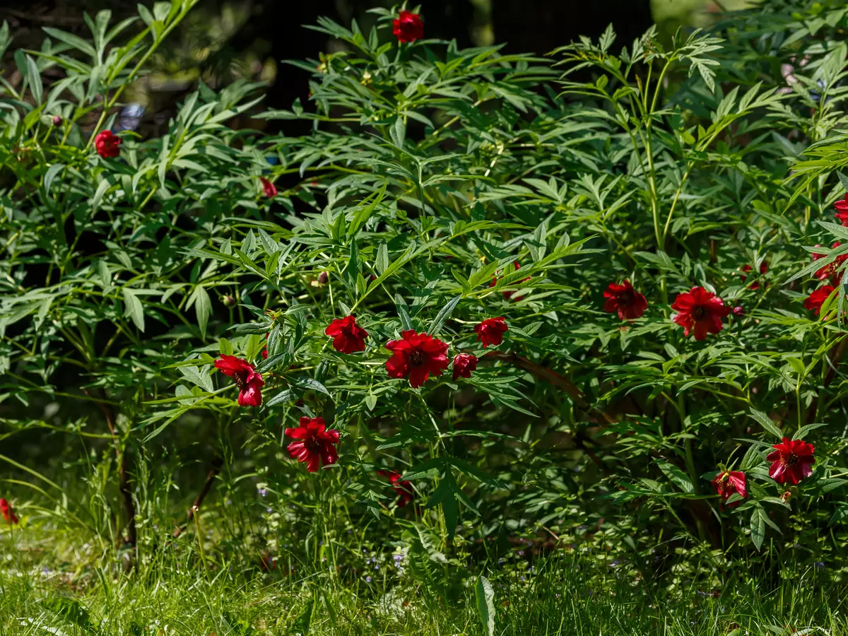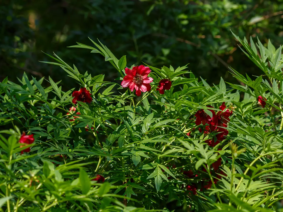 Paeonia delavayi, also known as Father Delavay's Tree Peony or Maroon Tree Peony, is named in honor of Pierre Jean Marie Delavay, a French missionary and plant enthusiast, this rare and exquisite tree peony enchants with its lavish burgundy blossoms and deep, glaucous green foliage. The slightly nodding, maroon-red flowers feature a striking central cluster of yellow stamens, exuding a delicate fragrance that attracts butterflies to your garden. This multi-stemmed, deciduous shrub thrives in fertile, organically rich soils with full sun to part shade, making it a perfect addition to borders, as a specimen plant, or along fences and driveways.
