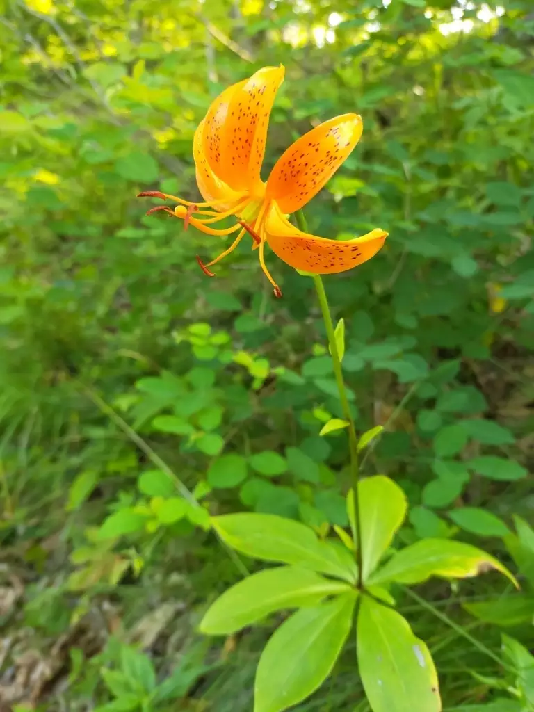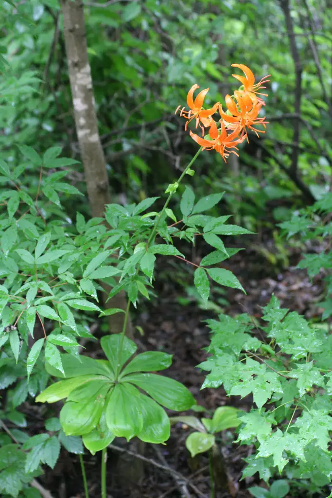 Discover the enchanting Lilium distichum, also known as Manchurian Turk's Cap Lily, a captivating plant native to the diverse landscapes of northeastern China, Korea, and eastern Russia. This remarkable martagon-relative stands out with its striking yellow-orange to orange-vermilion flowers, adorned with purple spots and elegantly reflexed petals, blooming profusely during July and August. Hardy and resilient, this perennial bulb thrives in USDA Zones 4-9, reaching heights of 18-36 inches and widths of 6-12 inches, making it an ideal addition to any garden. With its distinctive basal whorl of leaves and sporadically arranged smaller leaves along its slender stem, Lilium distichum adds an unusual touch of elegance to shaded woodland settings or garden borders. It flourishes in rich, well-drained soil and requires even moisture to truly shine. Whether you’re looking to add a splash of color or seek a plant resistant to verticillium wilt, Manchurian Turk's Cap Lily offers a unique and hardy option for garden enthusiasts.