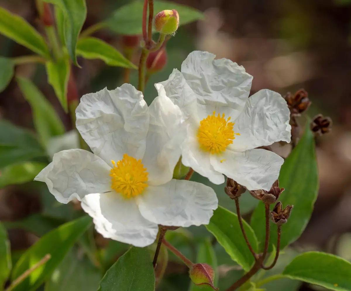Montpelier Rockrose attracts a flurry of life with its nectar-rich flowers, becoming a haven for bees and butterflies as it flourishes from spring through summer. Despite its drought-resistant nature, periodic summer watering is advantageous in dry climates, encouraging prolific blooms and growth. Hardy in Zones 8-11 and tolerating temperatures as low as 23ÂşF, this low-maintenance rockrose encourages biodiversity while offering aesthetic elegance. Fast-growing and self-sustaining, it forms a sprawling, lush canopy, making it perfect for ecological restoration and sustainable landscaping. Whether you're cultivating it for its ornamental beauty, its fragrant contributions, or its beneficial ecosystem services, Montpelier Rockrose stands as a robust choice for any garden enthusiast.