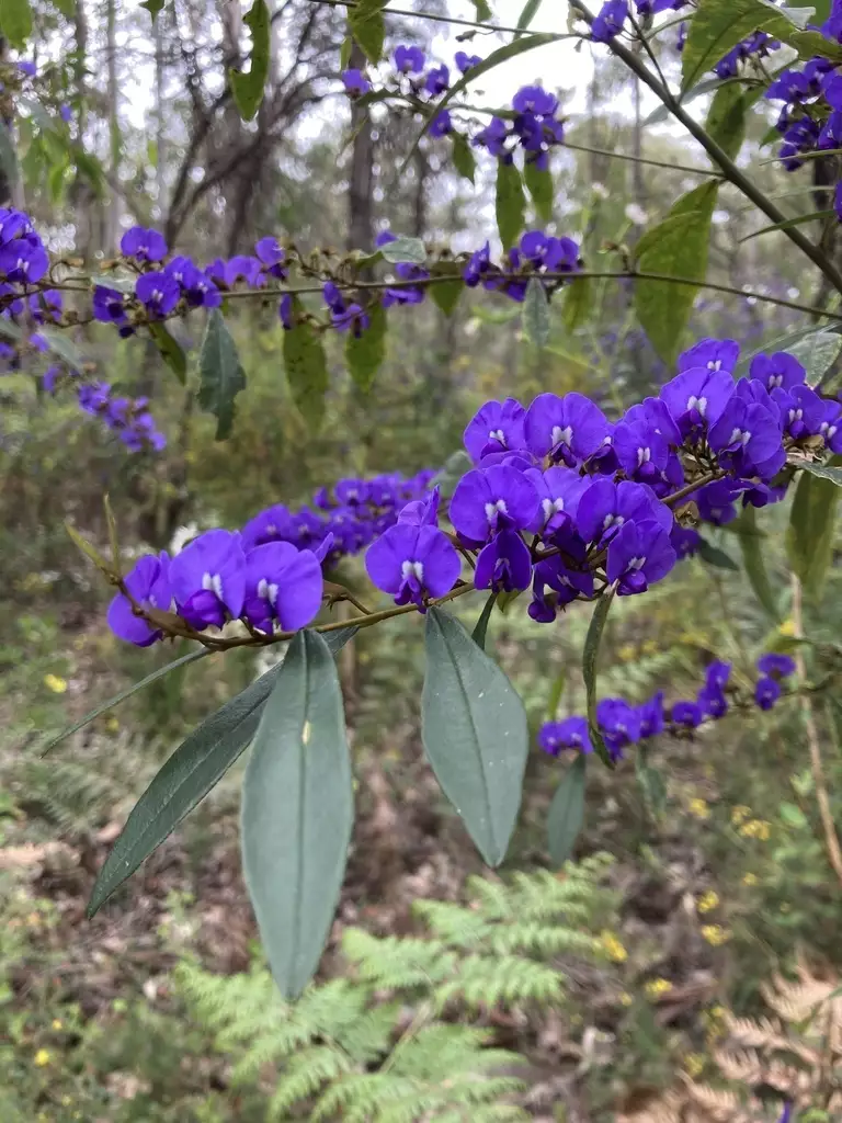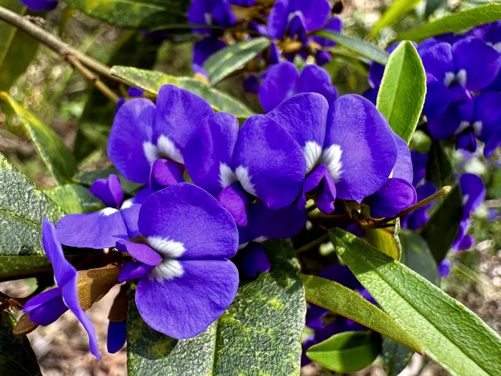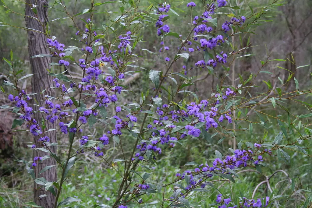 Discover the enchanting Hovea elliptica, popularly known as Tree Hovea or Karri Blue Bush, a stunning ornamental shrub native to Western Australia's diverse landscapes. Standing erect and slender, Hovea elliptica reaches a height of 1.5-10 ft, flaunting distinctive rust-colored haired branches and narrow triangular stipules. Its elliptical leaves, approximately 3 inches in length, provide a graceful backdrop to the captivating purple or blue flowers that elegantly grace the bush from spring to summer.