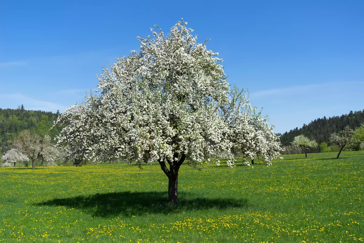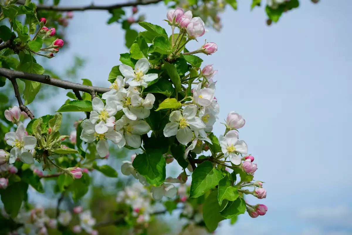 A favorite among wildlife, apple trees attract numerous beneficial insects, with the blooms serving as a vital nectar source for bees, butterflies, and moths. The ripened fruits are a scrumptious treat for birds, deer, and small mammals, supporting the ecosystem well into late fall. Due to their short, twisty trunks and gnarly branches, apple trees also provide protective nesting sites for various species.