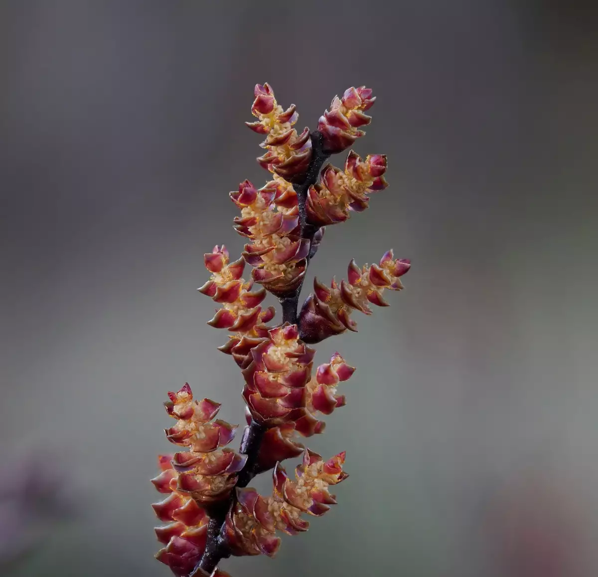 Discover the charming allure of Myrica gale, commonly known as Sweetgale or Bog Myrtle, an enchanting broadleaf shrub that thrives in moist, acidic environments. Native to the Northern Hemisphere, including the scenic landscapes from North America, Eurasia to Japan, this hardy plant can elegantly grace your garden, standing anywhere between 3-6 feet tall. Adored for its sweet fragrance, the narrow, obovate leaves are adorned with yellowish resin droplets, offering dual colors of gray-green above and a paler shade below. Sweetgale produces unique dioecious flowers; the male in squat greenish-yellow catkins, and the female in dense, pointed clusters, eventually fruiting into distinctive brown nutlets that persist through winter, adding interest to colder months.