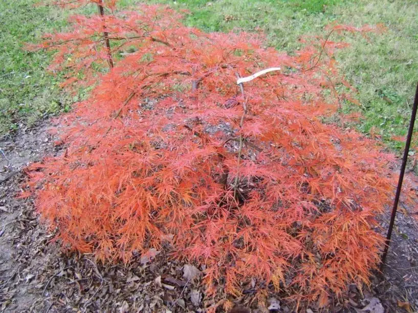 Looking for a unique and eye-catching addition to your landscape? Look no further than the Acer palmatum ssp. matsumurae 'Ornatum' Seiryu Laceleaf Japanese Maple. With its bronze-red foliage, this cultivar stands out from others like 'Inaba shidare,' 'Ever Red,' or 'Crimson Queen.' In late summer, the leaves turn greenish before assuming a prominent crimson-red in the fall. Each leaf has seven long thin lobes that are deeply divided, adding depth and texture to your landscape. This Japanese maple can grow to be 2 meters high and up to 3 meters wide, making it a striking focal point in any yard. Keep in mind that there may be significant variation in the seedlings that come from this cultivar, but that only adds to the excitement of growing this unique tree. Order your Acer palmatum ssp. matsumurae 'Ornatum' Seiryu Laceleaf Japanese Maple today and enjoy the brilliant, standout color it brings to your landscape.