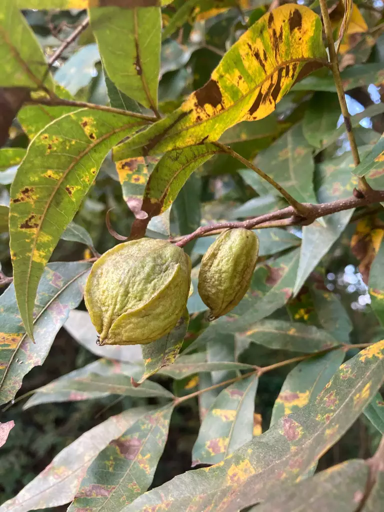 Carya × lecontei, popularly known as Leconte Hickory, is a captivating natural hybrid that embodies the unique traits of its parent species—Water Hickory (Carya aquatica) and Pecan (Carya illinoinensis). This magnificent tree, towering up to 150 feet, inherits the distinctive exfoliating bark from both parents and features alternate, pinnately compound leaves. Leconte Hickory thrives in moist, well-drained soils, primarily seen in bayous and river flood plains across the Mississippi River Valley, and states like Arkansas, Illinois, and Texas. Its defining characteristic lies in its flattened, oblong nuts, draped in a rough, mid-brown shell encasing a bitter kernel. While these nuts aren't commercially favored, they play a critical ecological role, serving as nourishing sustenance for wildlife such as squirrels, bears, and woodducks. The tree's wood, although brash and less durable for commercial use, contributes to soil stabilization in wetland environments. Leconte Hickory entices both wildlife enthusiasts and nature admirers with its fascinating hybrid lineage and resilience in dynamic ecosystems.