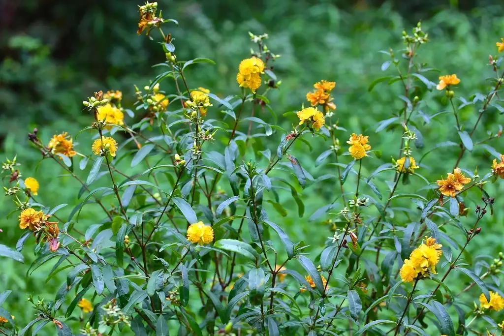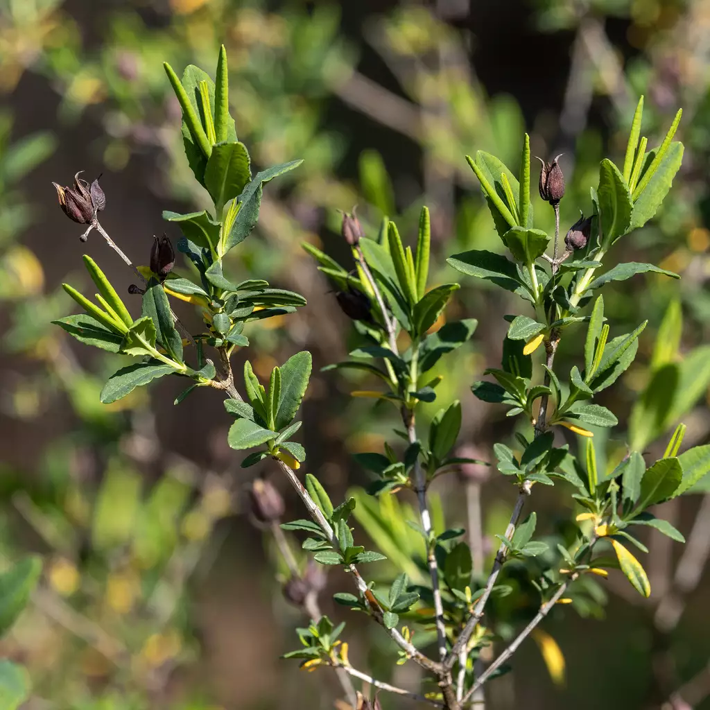 Discover the vibrant allure of Hypericum prolificum, commonly known as Shrubby St. John's Wort, a stunning addition to any landscape. This compact, deciduous shrub thrives in Central and Eastern North America, gracing gardens in USDA Zones 3 to 8. With an ideal height of 1-5 feet and a spread of 1-4 feet, it's perfect for native plant gardens or as a distinctive hedge. From June to August, enjoy its showy, bright yellow, five-petaled flowers that not only captivate the eye but also attract bumblebees and a variety of pollinators. Its hardiness is matched by an ability to flourish in diverse conditions—from full sun to part shade and clay to rocky soils—with admirable drought tolerance. With minimal maintenance, its tough yet visually appealing foliage provides year-round interest; watch as the bark of older stems exfoliates, revealing a lovely pale orange hue. Whether stabilizing embankments or enhancing a shrub border, this plant's prolific, dense, and rounded habit brings both aesthetic appeal and ecological value, all while resisting deer, rabbits, and even erosion. A testament to resilience, this species is an enduring native garden treasure, invaluable for its beauty and biodiversity benefits.