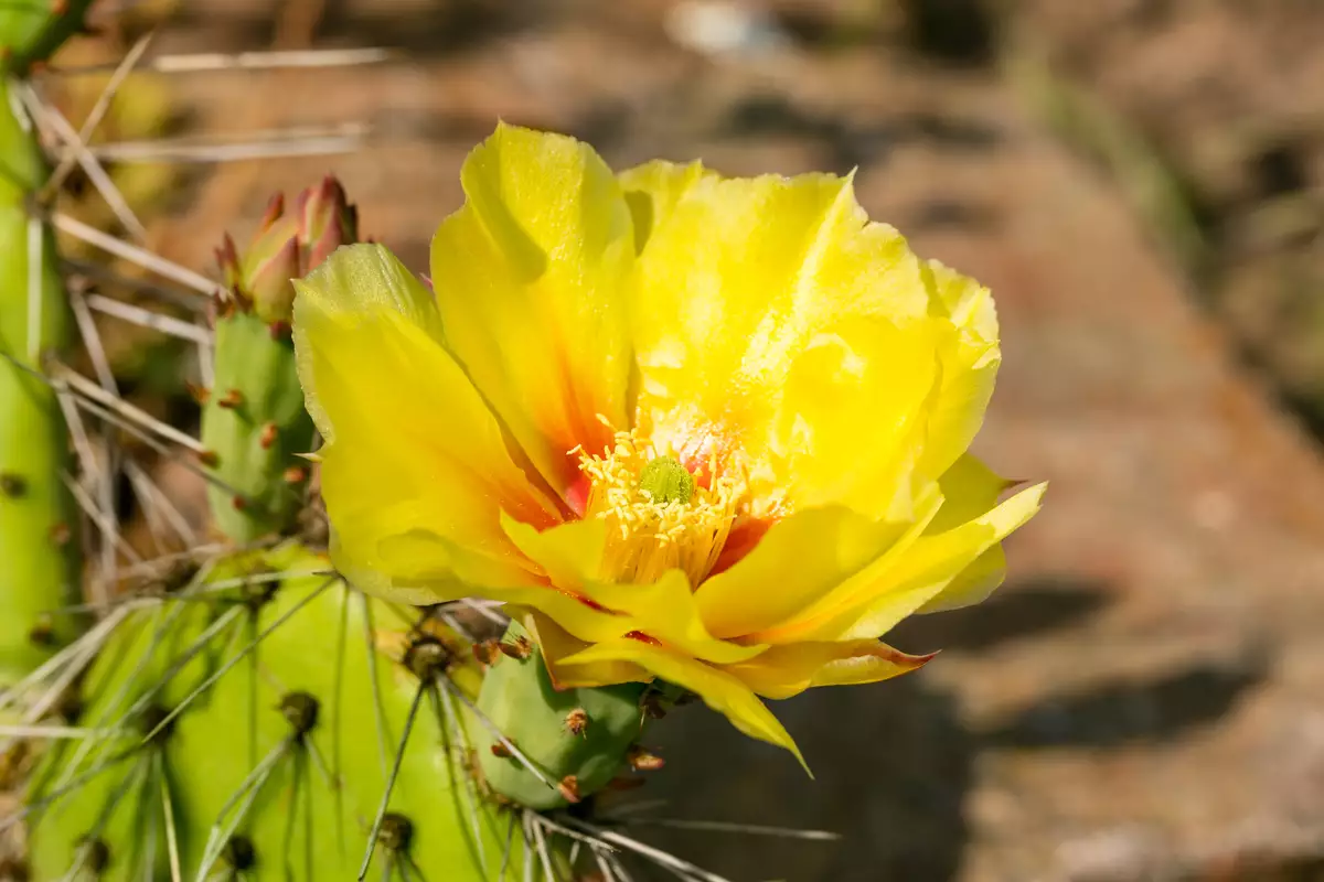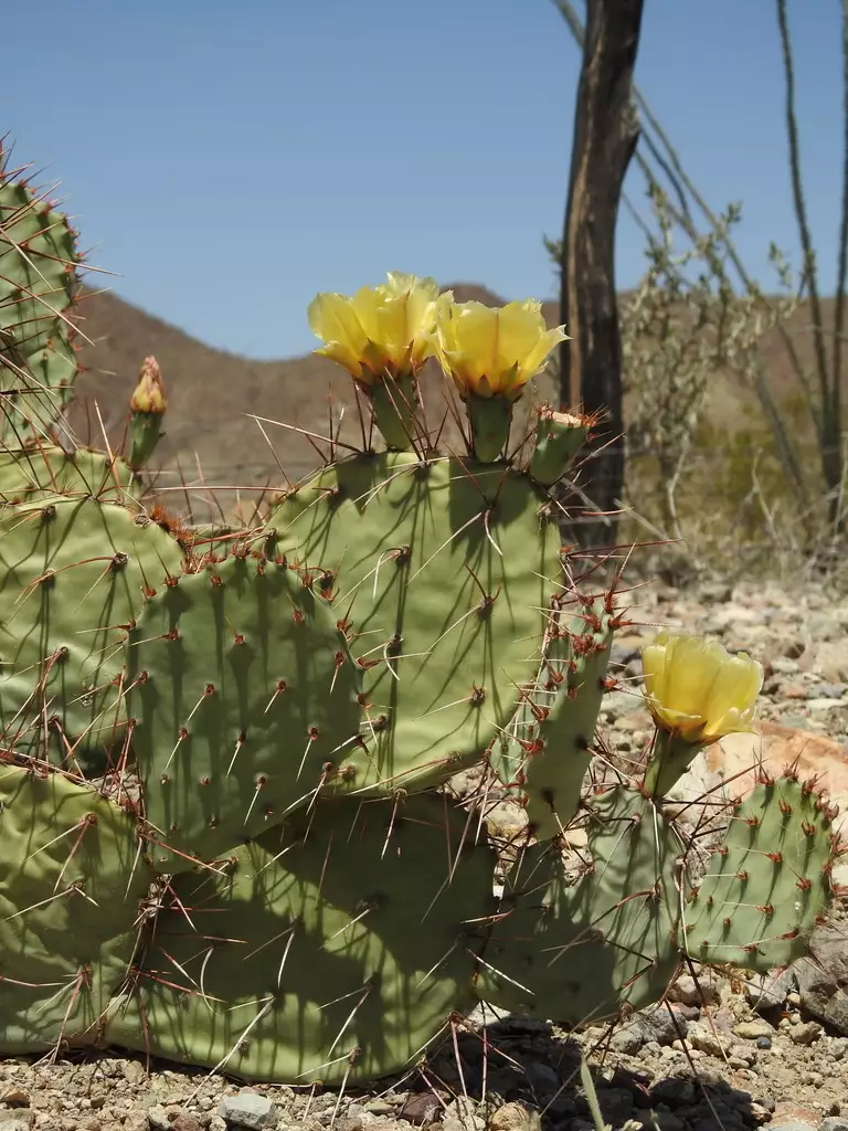 Discover the unique charm of Opuntia phaeacantha, commonly known as Tulip Pricklypear, Desert Pricklypear, or Brown-Spine Pricklypear. Native to the Southwestern United States, Northern Mexico, and the Lower Great Plains, this captivating cactus forms dense thickets that can thrive in diverse environments from arid deserts to cool, moist forests. With its stunning display of bright yellow flowers, often accented by a red center, and followed by delectable red or purple fruits, this plant offers both visual and culinary delights. These fruits, with their mild watermelon or pear flavor, are a vital food source for desert wildlife.