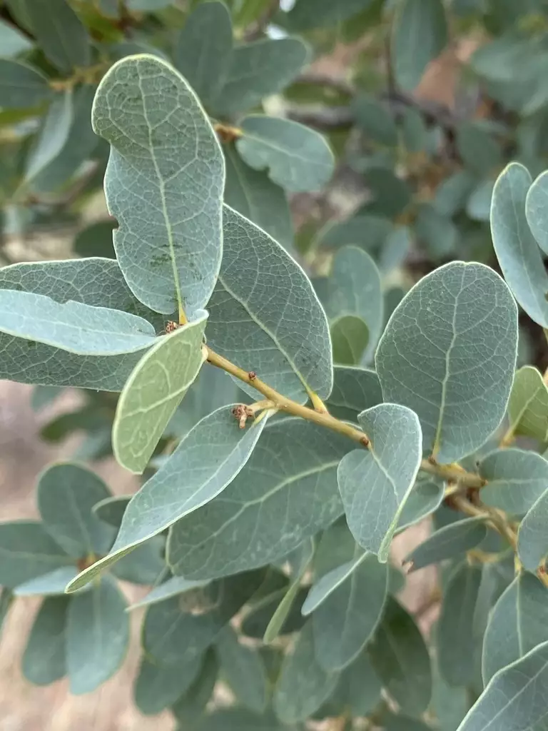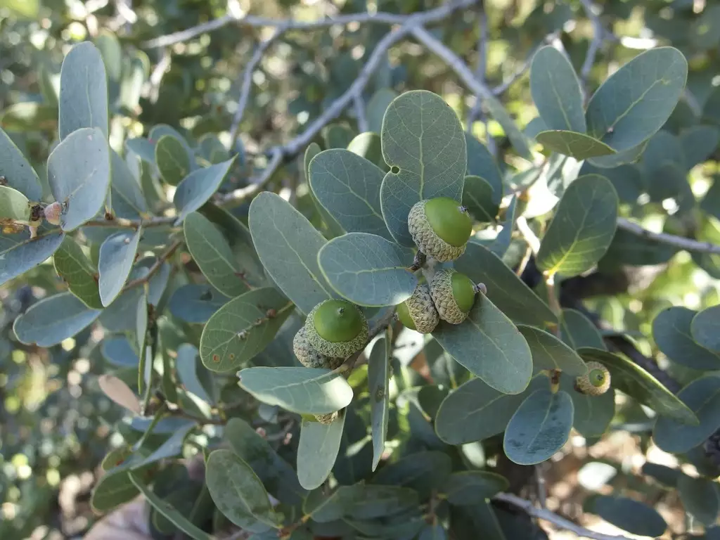 Discover the striking beauty and resilience of Quercus oblongifolia, commonly known as Mexican Blue Oak. This evergreen marvel is admired for its unique bluish-green foliage and adaptability to harsh environments. Perfect for adding distinctive character to landscapes, the Mexican Blue Oak thrives in semi-arid regions across the southwestern United States and northwestern Mexico. It boasts a rounded crown, growing to a mature height and width of 25-30 feet, and showcases deeply fissured grayish-brown bark. In spring, delicate yellowish-green flowers appear, followed by light brown acorns nestled in scaly cups.