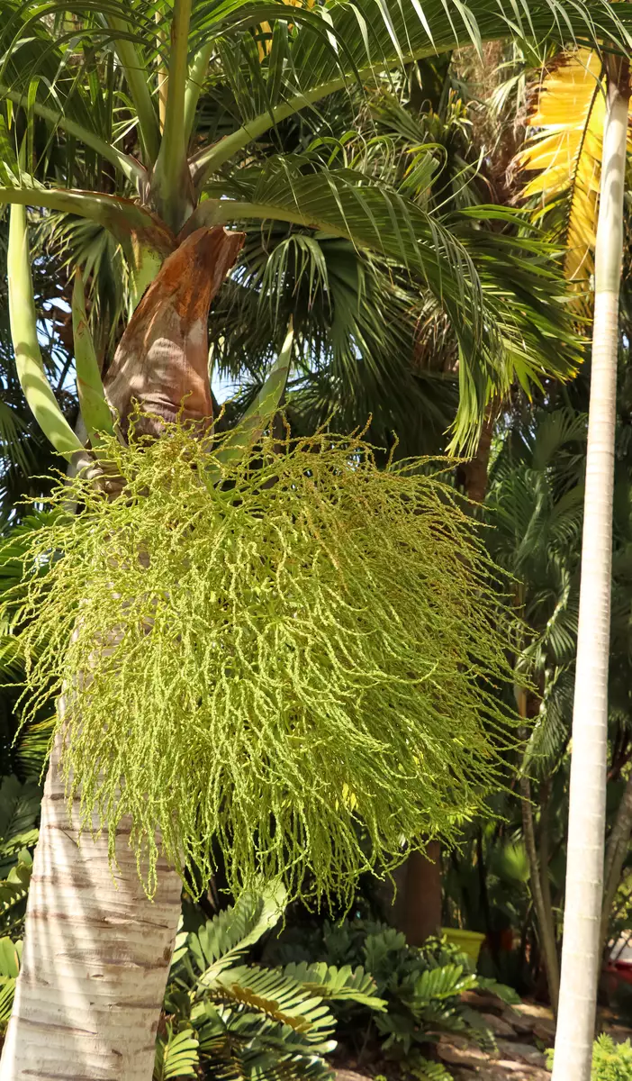 Wodyetia bifurcata, commonly known as Foxtail Palm, is a stunningly unique and rapidly growing plant native to the remote areas of Queensland, Australia. Standing out with its elegantly arching fronds, reminiscent of a fox's tail, this solitary palm can reach heights of up to 50 feet, with a slightly swollen, smooth trunk that glows copper under sunlight. Its adaptability has propelled its popularity globally, thriving in regions from Miami to Sydney. This palm flourishes in full sun and well-drained soils, making it a splendid choice for roadsides and landscapes, where it adds a touch of regal elegance without overwhelming its surroundings. Notably, Foxtail Palm is self-cleaning, shedding its fronds naturally. The etymology traces back to 'Wodyeti,' an Aboriginal man instrumental in its discovery. While its seeds are protected due to its endangered status in its natural habitat, Foxtail Palm's enchanting presence and moderate drought tolerance make it a cherished choice for landscapes suited to zones 10B-11. Whether planted as singles or in dynamic groups, Foxtail Palm is sure to captivate and impress.