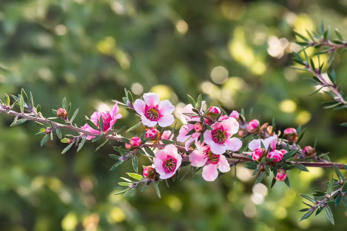 Discover the beauty and resilience of Leptospermum scoparium, commonly known as Manuka or Tea Tree, an evergreen shrub native to New Zealand and southeastern Australia. This ornamental gem thrives in USDA Zones 9 to 11 and boasts a myriad of garden-worthy features. Standing 6-10 feet tall and wide, with aromatic needle-like leaves, Tea Tree offers year-round appeal. Its late spring and summer blossoms, in shades of red, pink, or white, attract bees and set the stage for the production of the renowned Manuka honey. These flowers yield small, woody capsules that encapsulate tiny seeds, hanging on long after the blooms have faded.