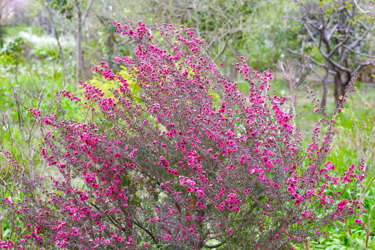Perfect for coastal, Mediterranean, and gravel gardens, this deer-resistant shrub thrives in acidic, well-drained soil, enjoying full sun to light shade. It's moderately drought-tolerant once established, making it ideal for low-water landscapes. Virtually free from pests and diseases, it requires minimal maintenance—just annual post-bloom pruning to maintain shape. Tea Tree has also made its mark as an intriguing option for containers and borders. Whether for its stunning blooms or its storied connection to Manuka honey, Tea Tree is a captivating choice for some gardens.