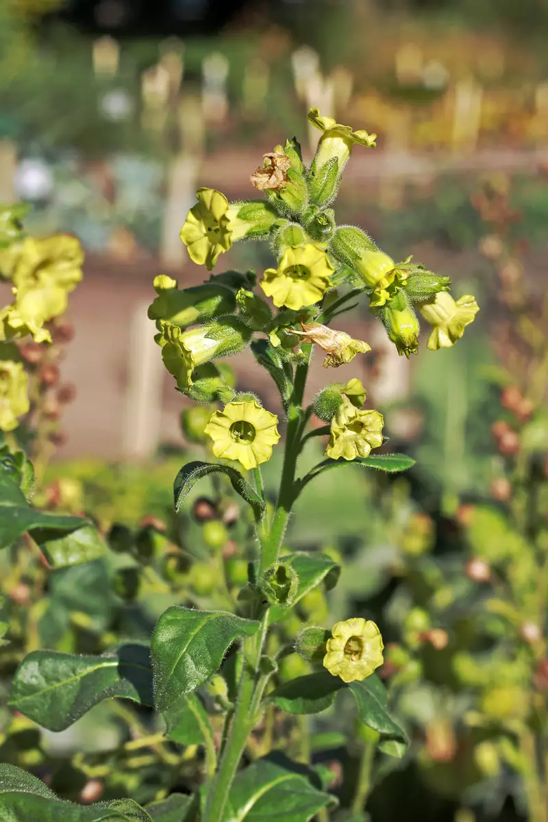 Discover the allure of Nicotiana rustica, commonly known as Aztec Tobacco or Wild Tobacco, a plant steeped in history and cherished for its potent properties. Revered by Native American tribes for its medicinal and ceremonial uses, Aztec Tobacco played a significant role in indigenous trade across the Americas. Introduced to France by Jean Nicot de Villemain, its hypnotic qualities captured the fascination of Queen Catherine de Medicis, earning it the moniker "American powder." Not cultivated for smoking, this intriguing annual makes a striking addition to gardens, showcasing its large leaves and captivating phosphorescent green/yellow bell-shaped flowers. As a source of nicotine sulfate, it also boasts insect-repellent properties.