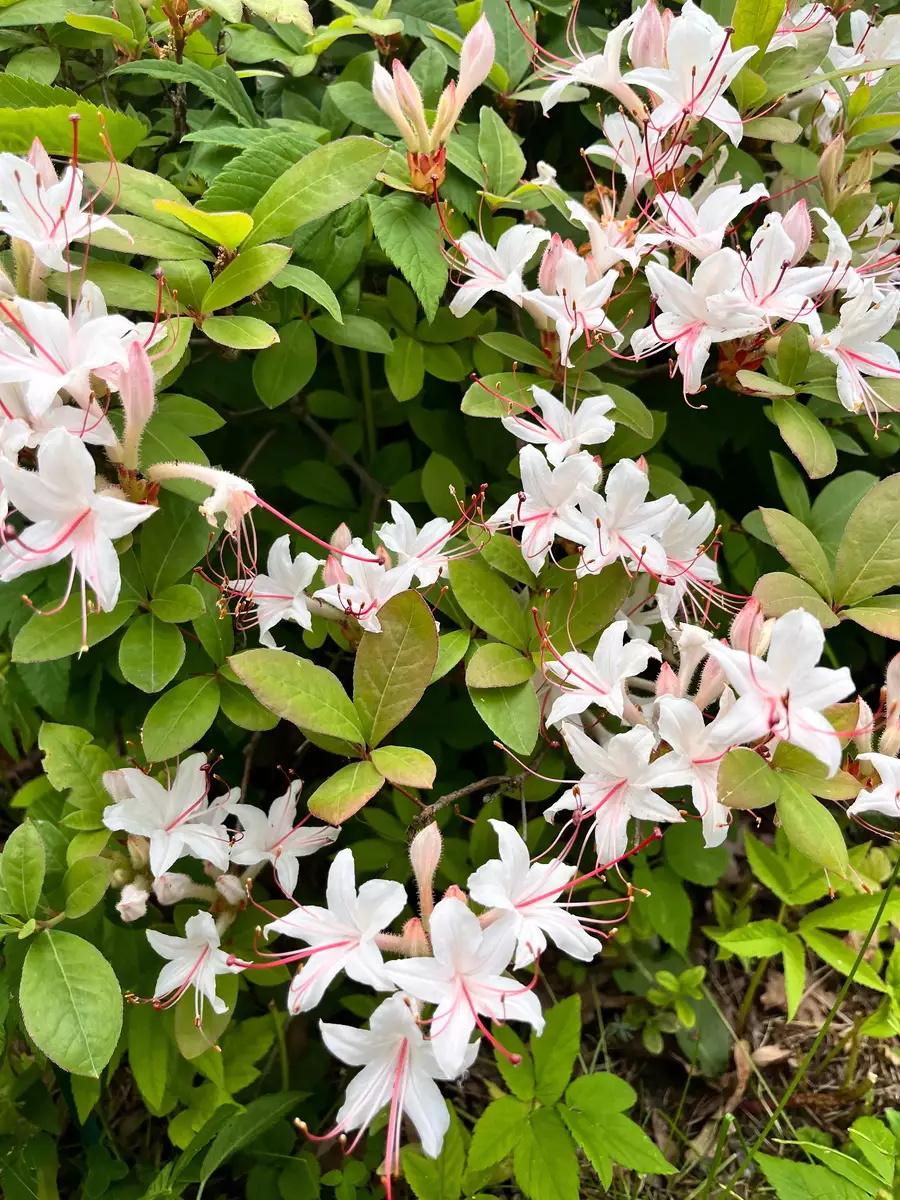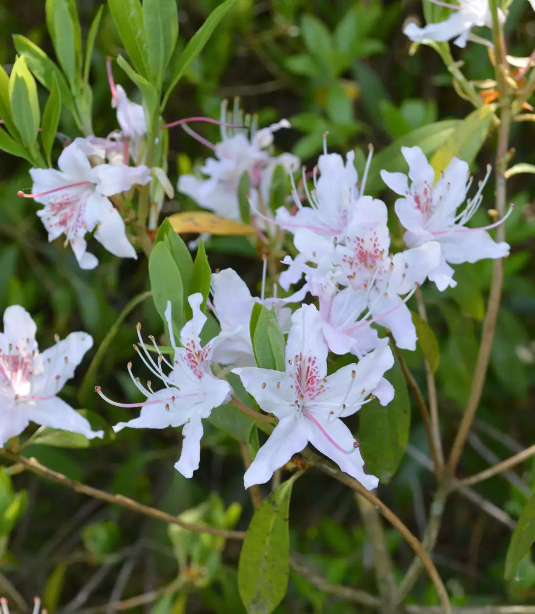 Discover the enchanting allure of Rhododendron arborescens, known fondly as Sweet or Smooth Azalea. This elegant, deciduous shrub, a proud member of the Ericaceae family, graces gardens with its stunning presence. Native to the sloped woodlands and streambanks of eastern North America, it thrives in USDA Hardiness Zones 4-7, reaching heights and spreads of 8-12 feet, occasionally even 20 feet. With its preference for moist, acidic, sandy soils and partially shaded locations, Sweet Azalea is a standout in any landscape, boasting fragrant, showstopping flowers that bloom from late spring to early summer. These striking white blooms, sometimes tinged with pink, attract butterflies, bees, and hummingbirds, while its fall foliage offers a vibrant palette of orange, crimson, and purple. Ideal for mixed borders, woodland gardens, or rain gardens, this azalea flourishes with minimal maintenance, requiring just deadheading post-bloom for optimal performance.