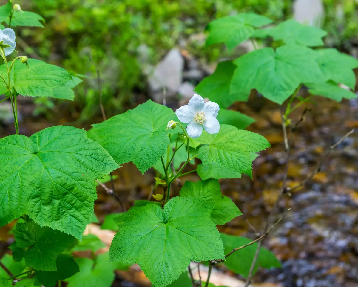 Discover the enchanting Rubus parviflorus, commonly known as Thimbleberry, a captivating deciduous, thornless shrub from the Rose family that enthralls with its unique beauty and ecological benefits. Ideal for nature enthusiasts and garden adventurers alike, Thimbleberry is perfect for hedges, naturalizing, or erosion control on shaded slopes. This native North American species showcases large, velvety, maple-like leaves and delightful clusters of fragrant, bright white flowers from May to July. Summer reveals its pièce de résistance: vibrant, raspberry-like fruits that not only add color but serve as a key food source for birds and wildlife. Thriving in zones 3-10, Thimbleberry excels in rich, slightly acidic, well-drained soils and adapts to conditions ranging from full sun to dappled shade. Its impressive height and spread (4-8 feet) make it a statement in any landscape, especially appealing to pollinators like bees and providing crucial habitats for butterflies. Celebrate biodiversity and ecological balance with the distinctive allure of Thimbleberry, a must-have for your garden's wild and wondrous tapestry.
