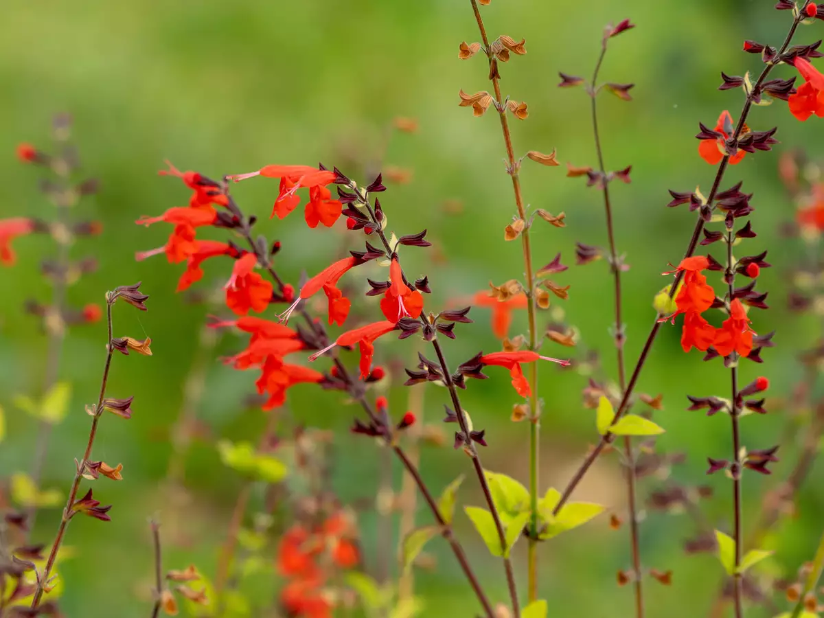 Salvia coccinea ‘Lady in Red’, also known as Blood Sage, Scarlet Sage, or Tropical Sage, is a striking addition to any garden, thanks to its eye-catching, brilliant red, tubular flowers that blossom from midsummer through fall. This compact and upright perennial reaches a height of 14-24 inches, making it perfect for adding vibrant vertical elements to borders, containers, city gardens, cottage gardens, and Mediterranean gardens. The 'Lady in Red' selection is known for its more prolific flowering compared to its wild counterpart, while maintaining the durability to withstand drought, humidity, and heat. This plant attracts and nurtures butterflies, bees, and hummingbirds throughout its exceptionally long blooming season. With its dense, bushy foliage of oval dark green leaves, it requires minimal maintenance. Hardy in USDA zones 8-10 but generally grown as an annual in cooler regions, it thrives best in full sun but appreciates some afternoon shade in hotter climates. Resistant to deer and free of serious pests, 'Lady in Red' has received prestigious awards like the Royal Horticultural Society's Award of Garden Merit. Bring lasting color and ecological diversity to your garden with this AAS Flower Winner and Fleuroselect Gold Medal recipient.